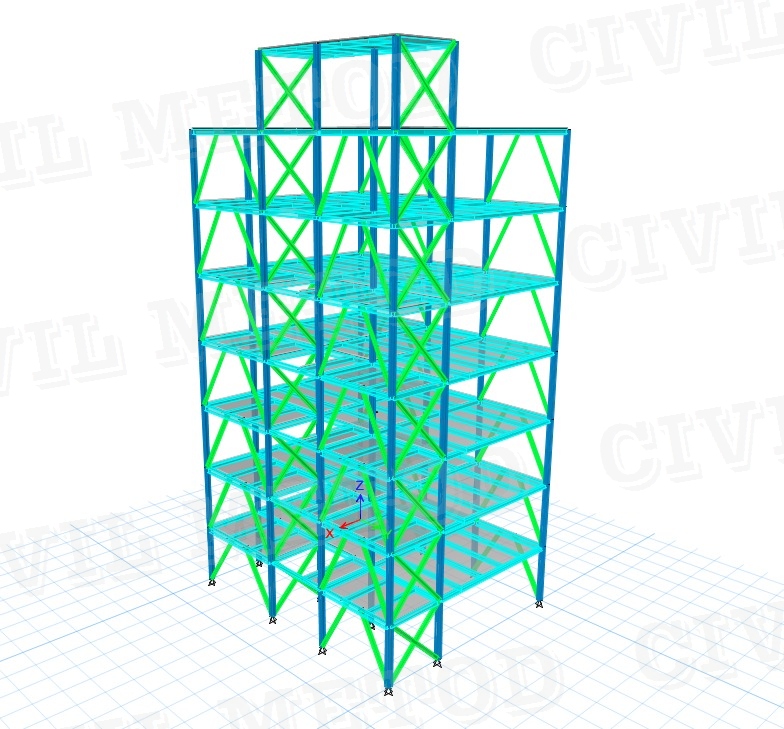 ساختمان فولادی ۷ طبقه با سقف عرشه فولادی و مقاطع نوردشده |